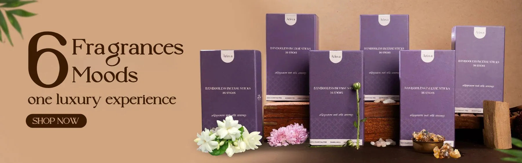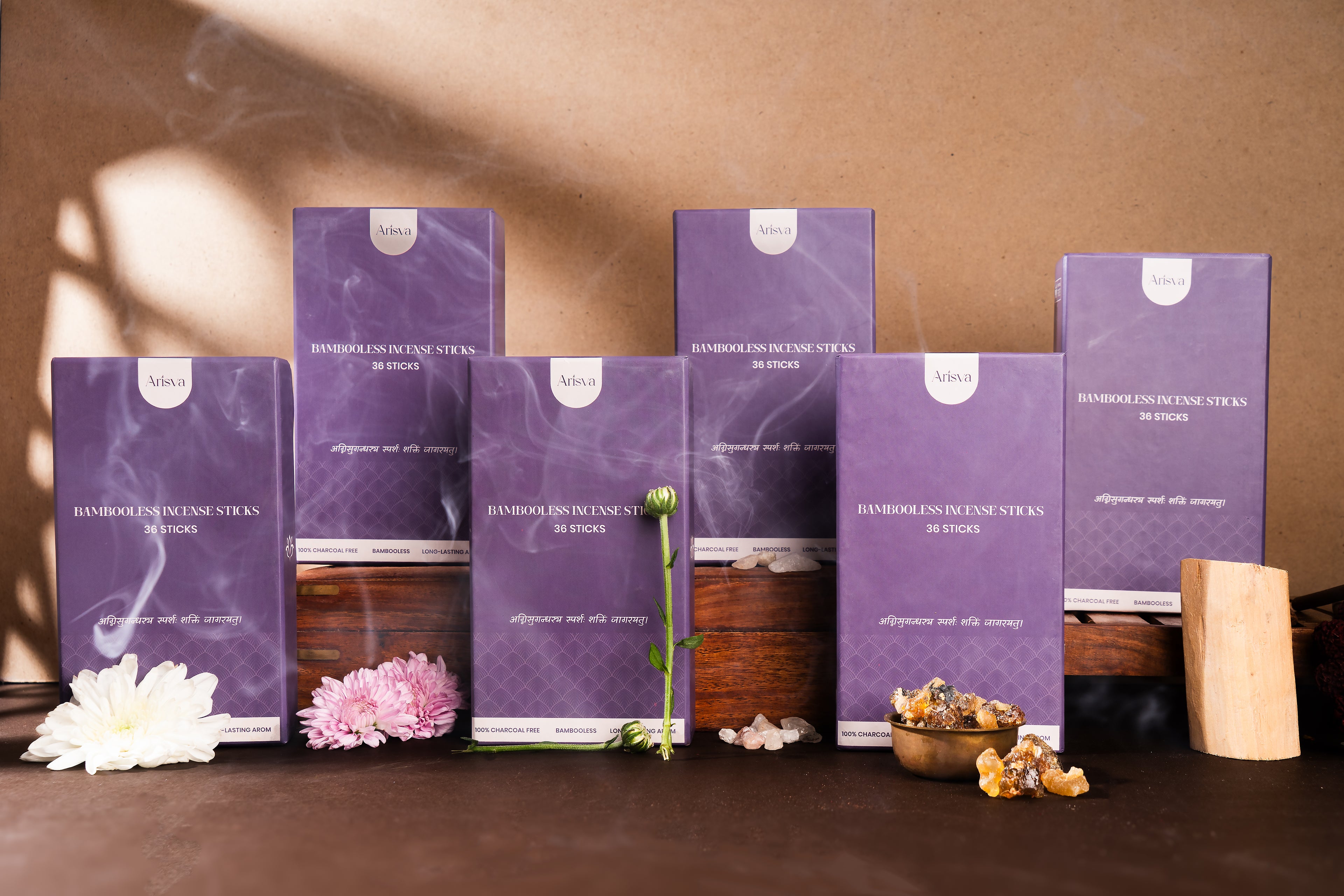 At Arisva, we craft more than products—we create experiences. Our Bambooless Incense Sticks are 100% charcoal-free, made from nature’s finest ingredients, designed to bring peace and purity to your space.